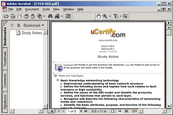 uCertify Study Notes for exam N10-002 6.10.05 search tags cn10 002 exam practice tests study notes free questions with test